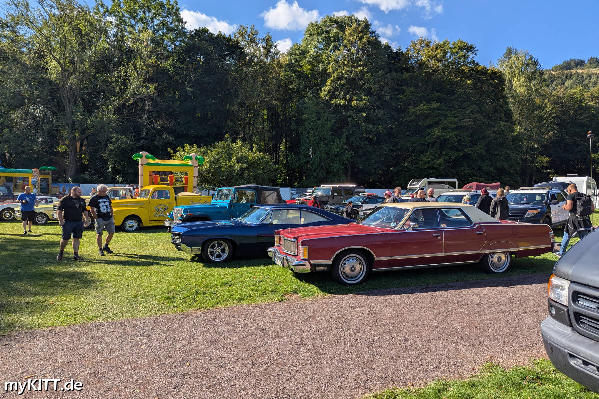The organizers had pulled out all the stops: in addition to numerous other US cars, a cinema, fan shops, and exhibition stands in the festival hall, there were two stages, numerous food stands, a large area with tables and benches, a sports field for the Hector Games, a playground, fairground games, bumper cars, and even a high-altitude carousel in the outdoor area!