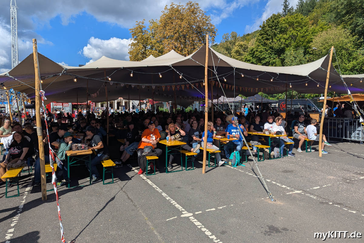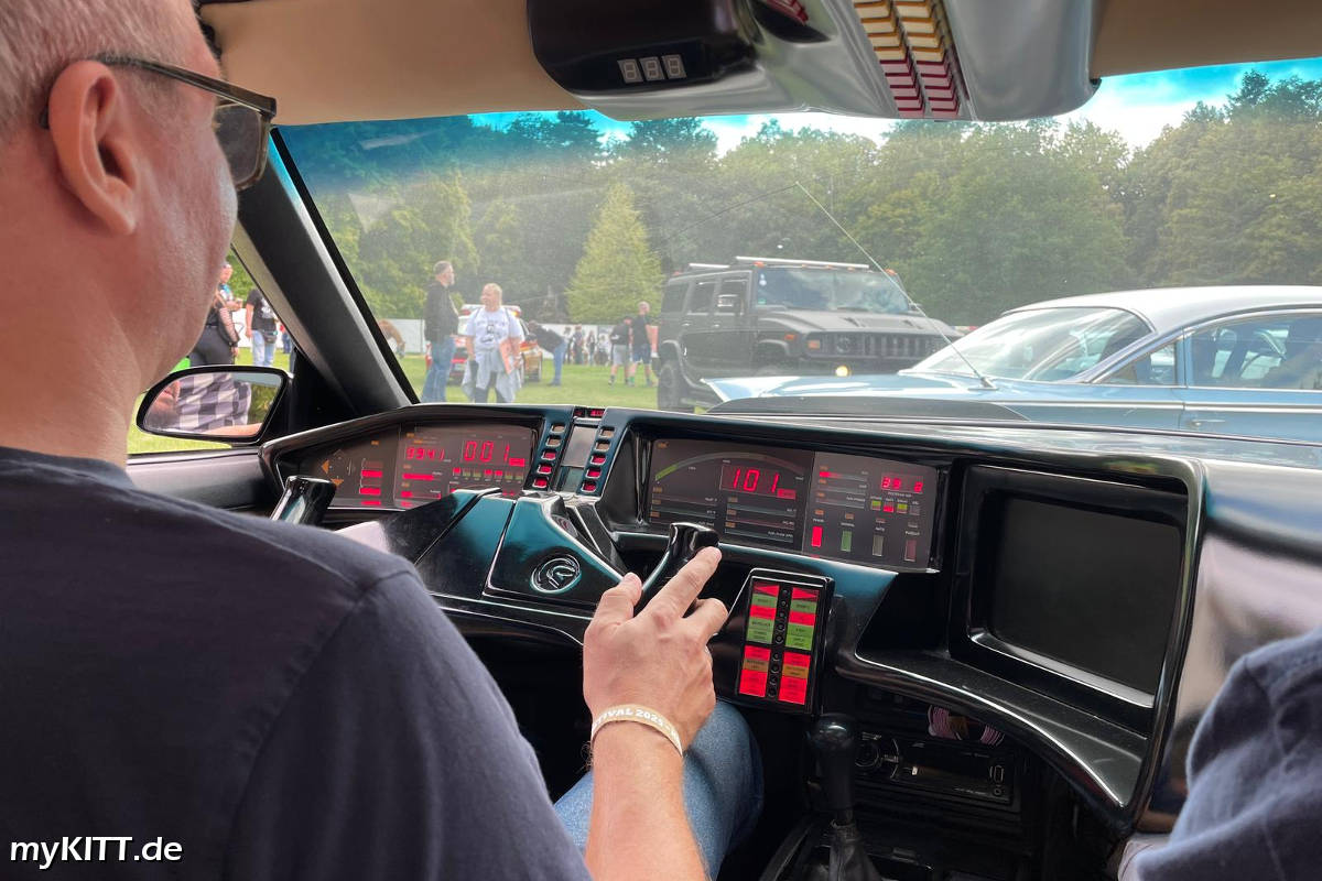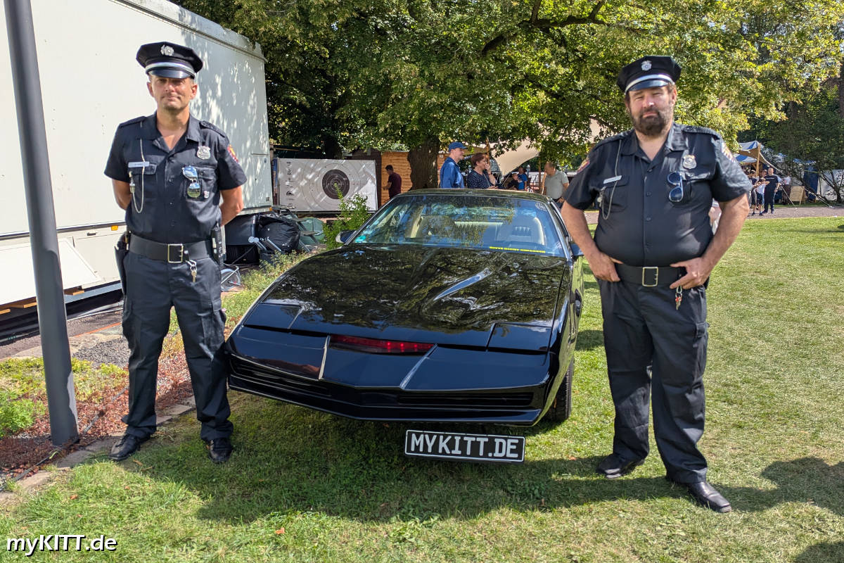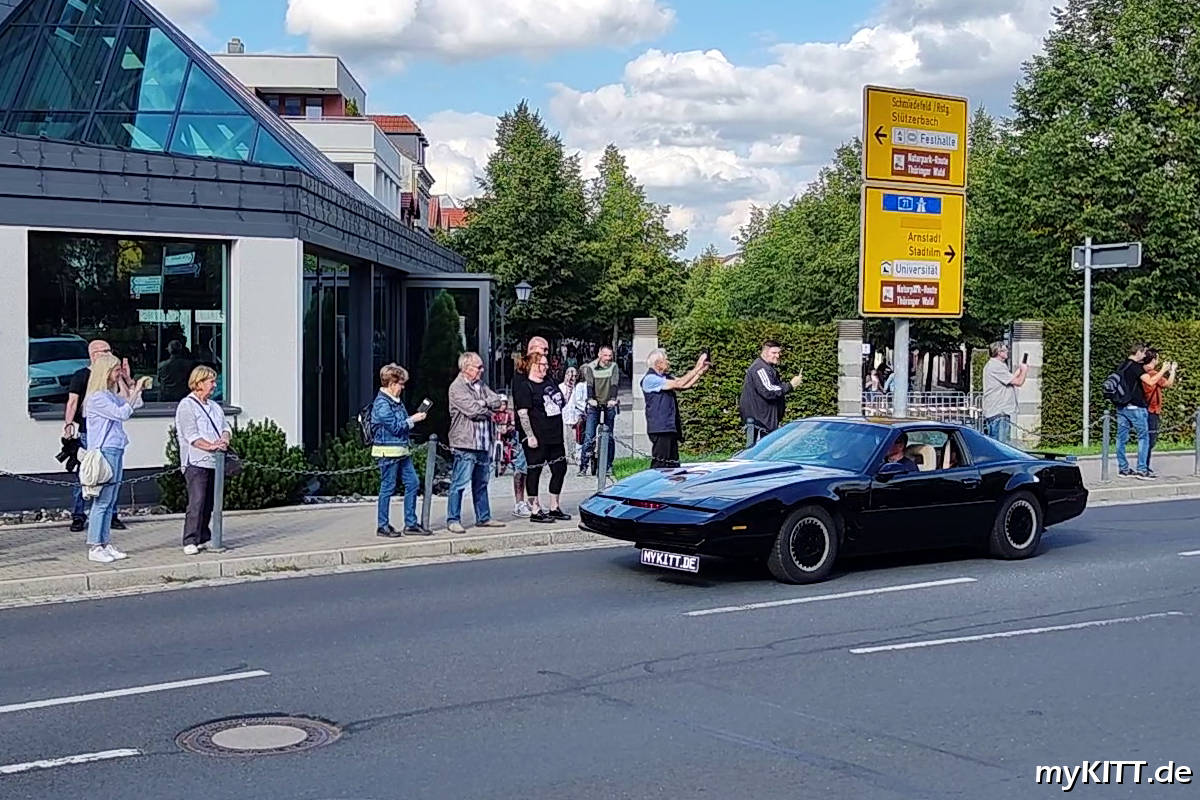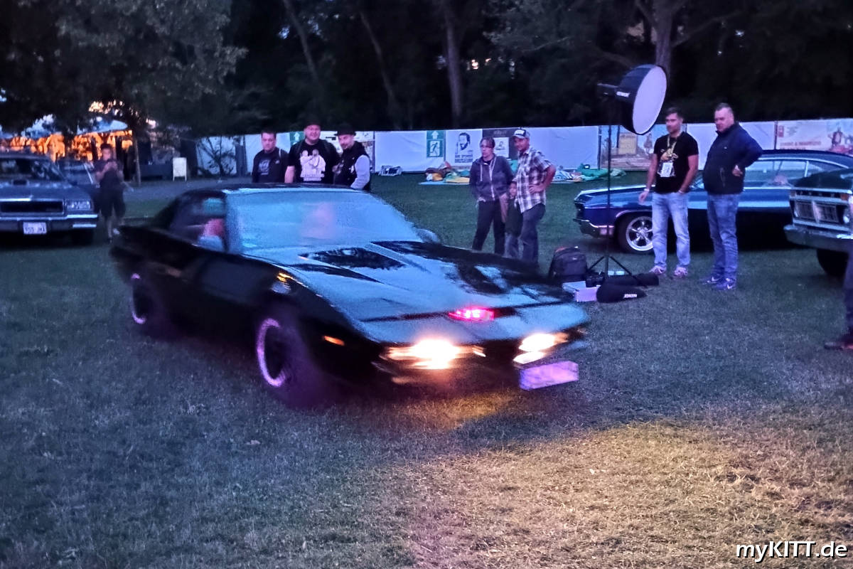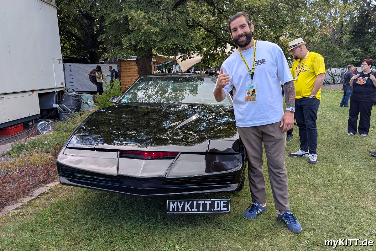 We arrived at the festival grounds at the Ilmenau Festhalle around 9:30 and set up K.I.T.T. in the adjacent city park - power connection, steering wheel, license plate change, voice output... the usual routine.