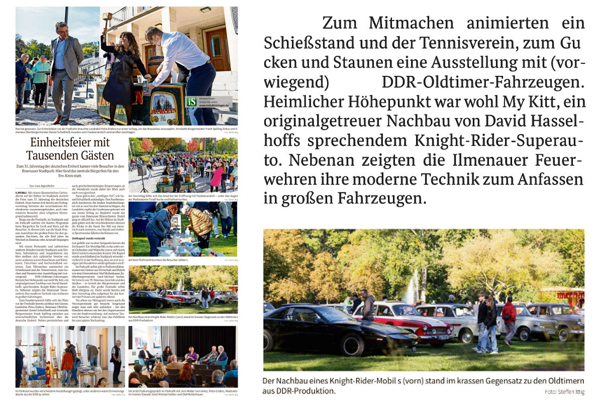 On 3rd October 2025, I attended the German Unity Day celebration in Ilmenau with K.I.T.T. - On 4th October, the newspaper "Freies Wort" reported on the event, including a photo and a paragraph about the "secret highlight".